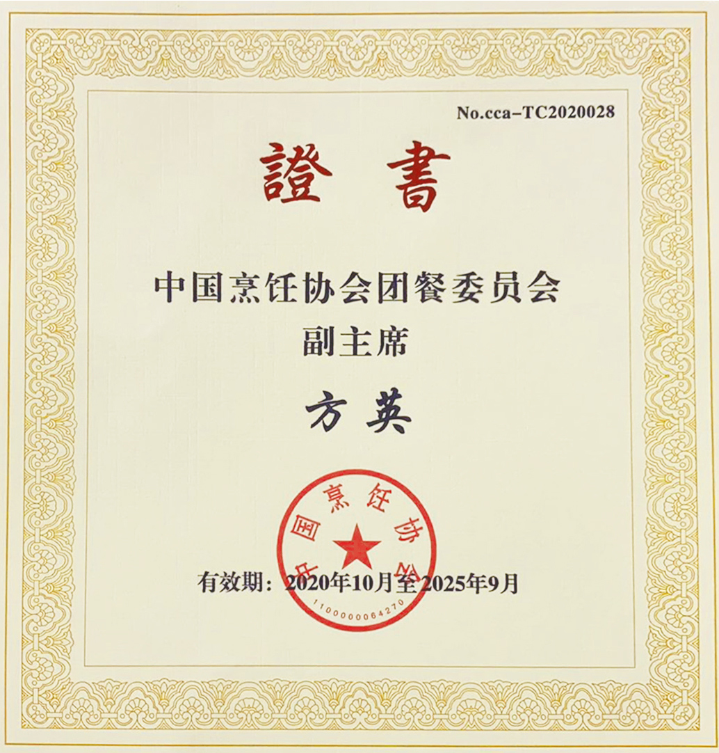授予方英女士-中國烹飪協(xié)會團餐委員會副主席