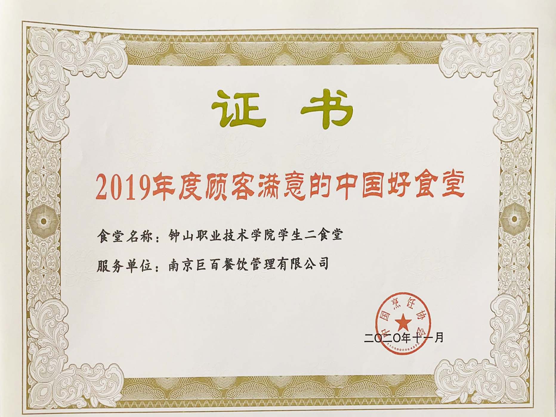2019年度顧客滿意的中國好食堂